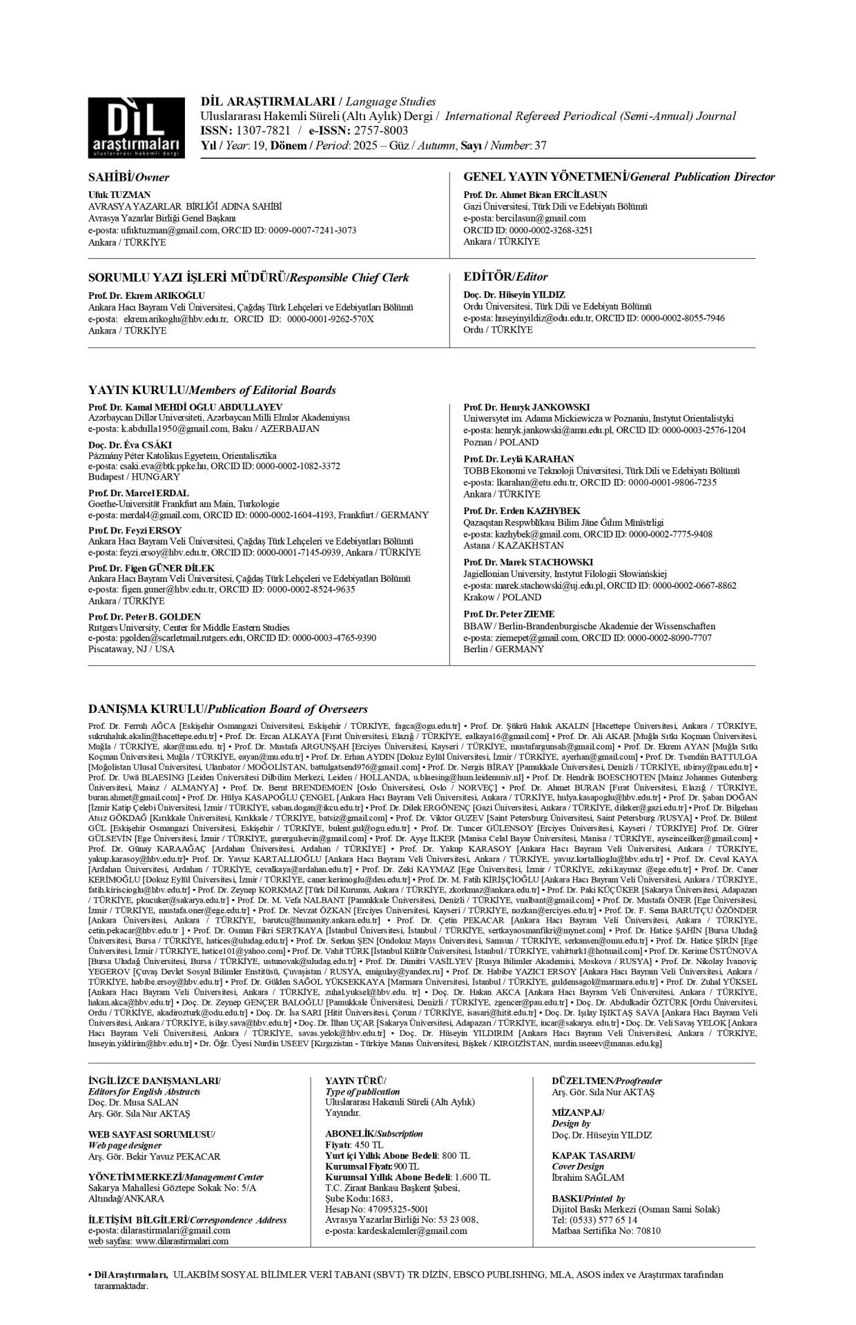 DİL ARAŞTIRMALARI SAYI 37 GÜZ 2025