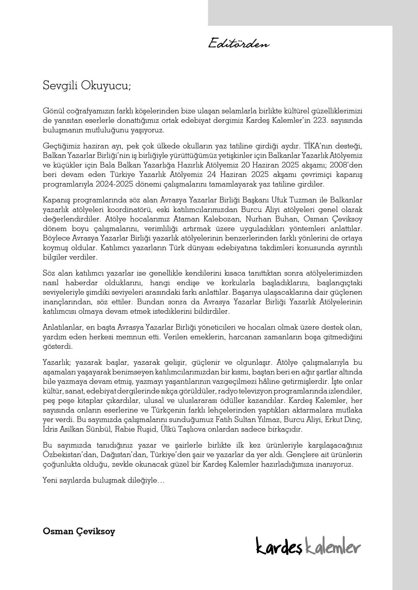 Kardeş Kalemler 223. Sayı Temmuz 2025